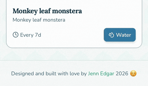 Watering a plant should feel satisfying, not like clicking a button in a spreadsheet. When you tap 'water' on a plant card, a gentle sprinkle animation plays across the screen. It's micro feedback that turns a utilitarian task into a small moment of joy.