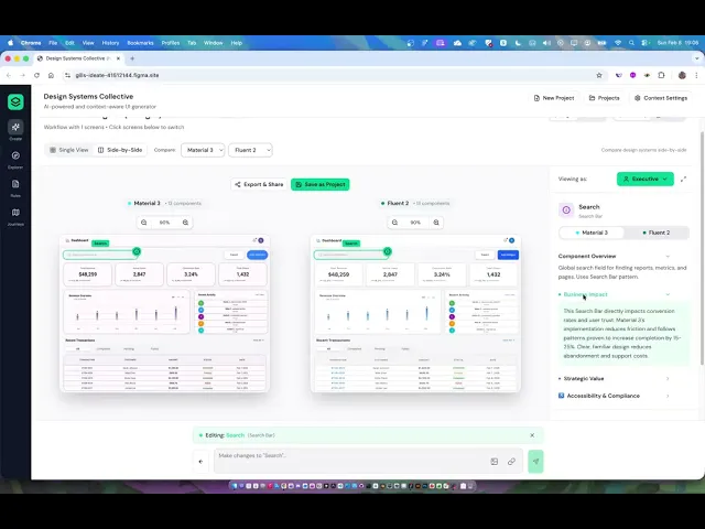 Afternoon: We shifted from building to refining and storytelling. Shane implemented brilliant persona based explanations, showing a CEO "revenue impact" and a designer "layout rationale" for the same component.