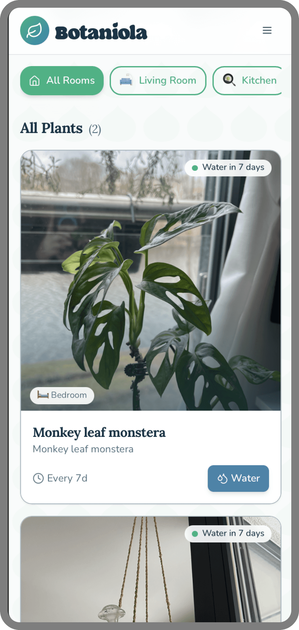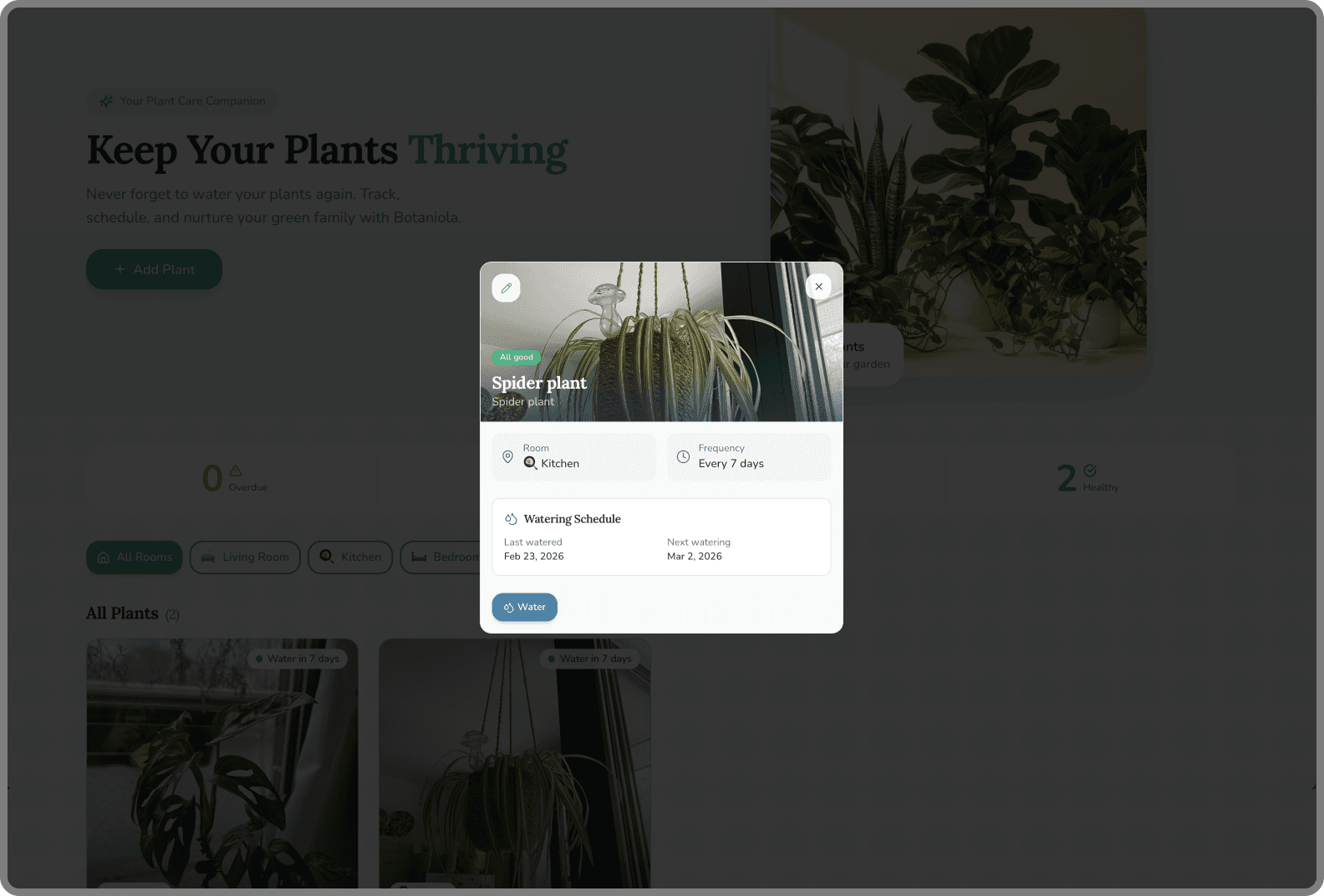 Filter by room (bathroom plants need different humidity) →