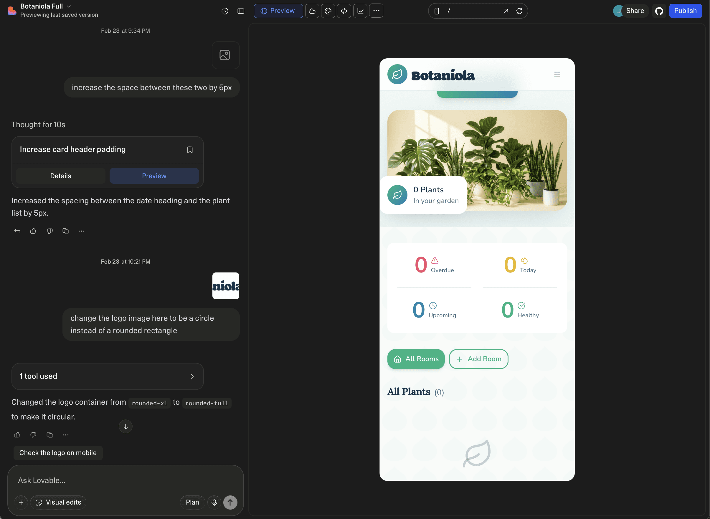 I wanted moisture tracking, species based tips, and photo growth timelines. Building forced me to ask: 'What's actually essential?' The answer made the product better.