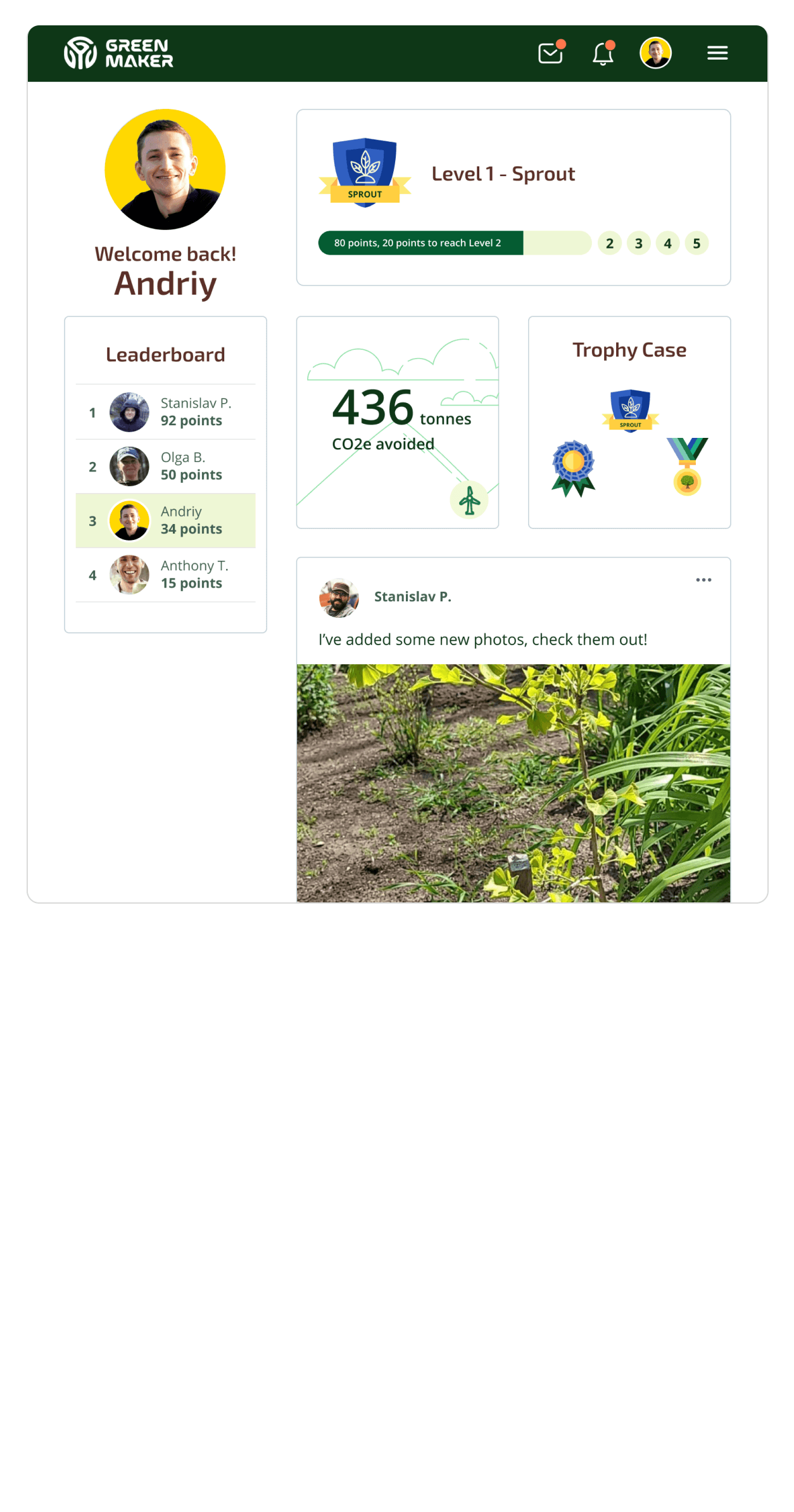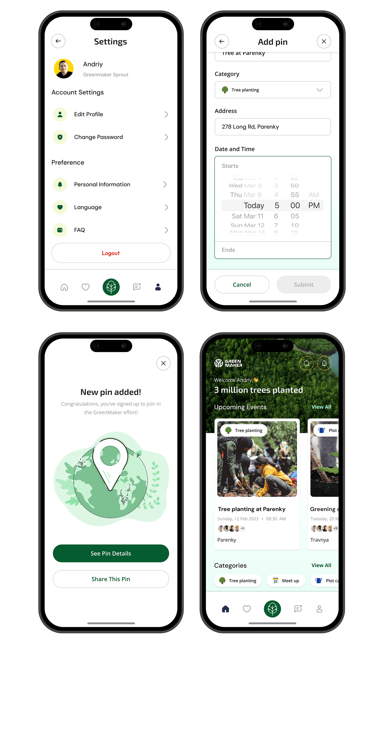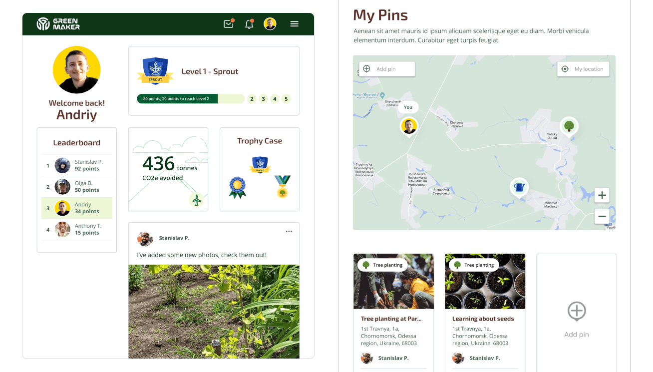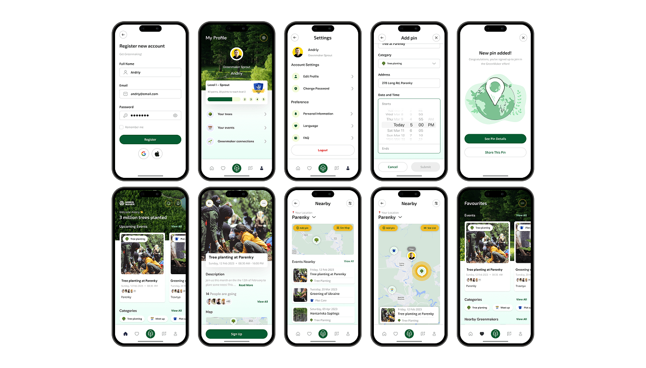 I led the UX/UI redesign of the Greenmaker Reforestation App, transforming it from a low engagement tool into a compelling platform that boosted user activation and retention, directly supporting their mission to rehabilitate war damaged regions in Ukraine.